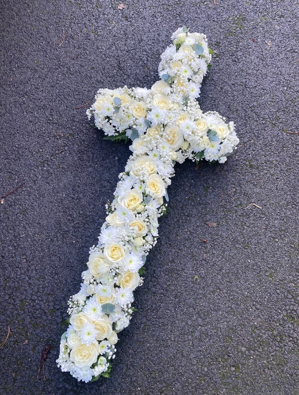 Cross tributes are available in any desired colour mix, please provide you choice either in the delivery instructions or you can speak to one of our florists direct by calling 01873 853 086