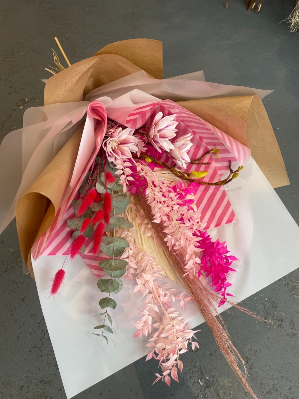 Our Everlasting Love bouquet is a mix of pink dried flowers.
