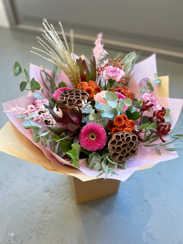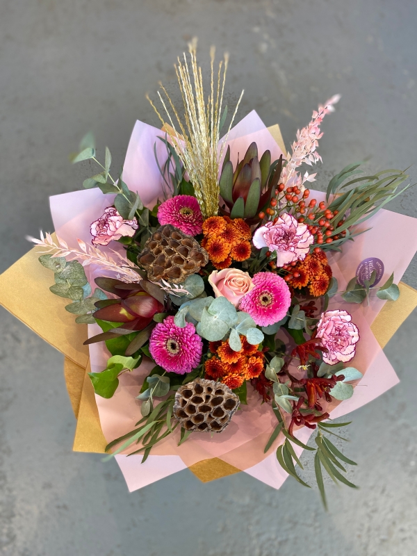 Each bouquet is lovingly crafted using the freshest seasonal blooms available. Occasionally, we may make flower substitutions to maintain availability—rest assured, these will always be of equal quality and value, preserving the beautiful presentation and style of your bouquet.