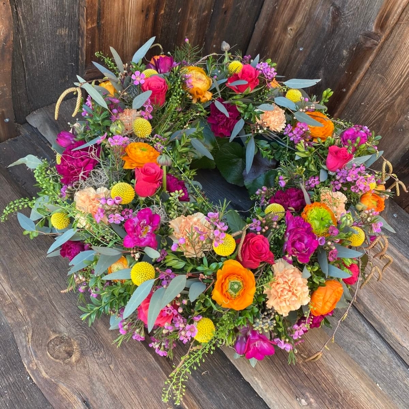 A mix of brightly coloured flowers and foliages