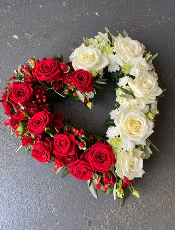 Modern heart tributes are available in any variation of colour. Please note your chosen colour mix either in the delivery instructions or you can speak to one of our florists directly on 01873 853 086